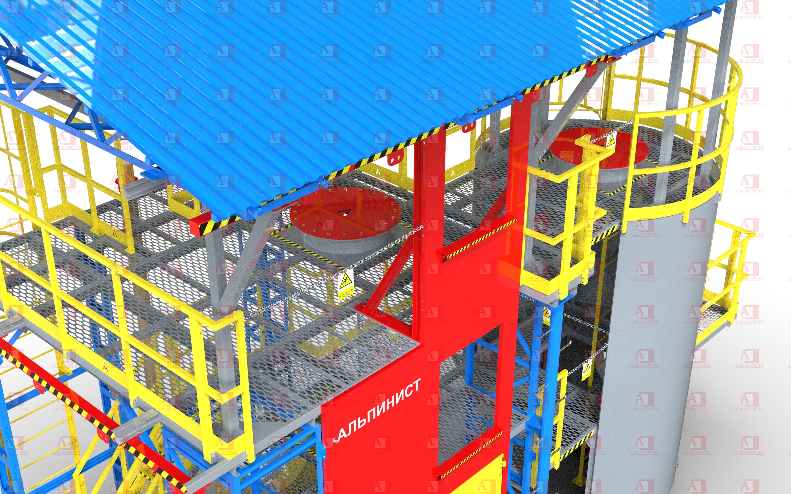 Доступ на рабочую площадку второго уровня осуществляется по стальной маршевой лестнице.
